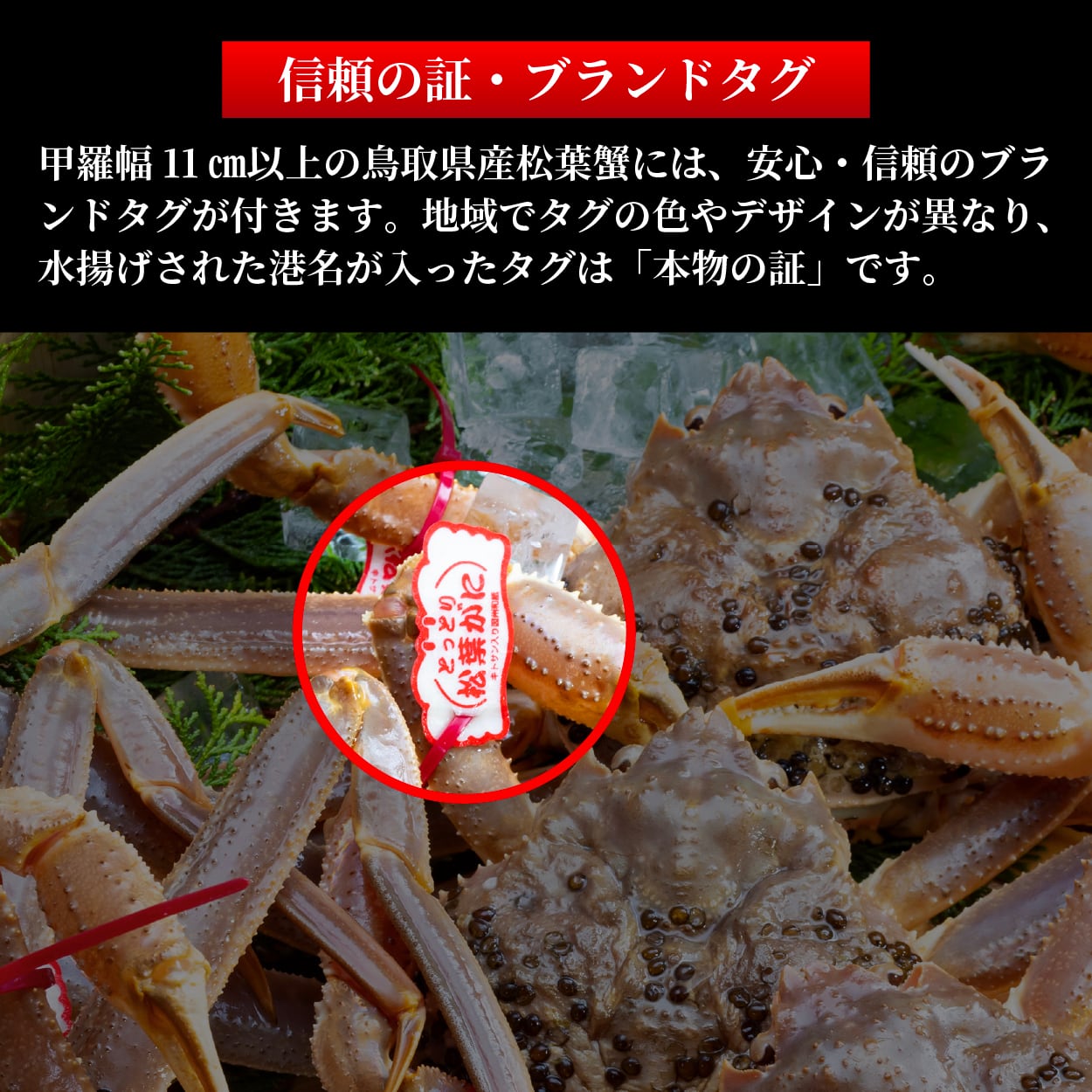 商品内容: 松葉ガニ(ブランドタグ付)超特大サイズ(1.1kg〜1.3kg)×1枚